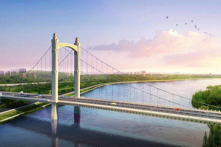 杭州九喬路大橋?yàn)閱嗡目缃M合梁自錨式懸索橋,橋梁全長(zhǎng)368.4m,跨徑布置為30+2×150+30m。...